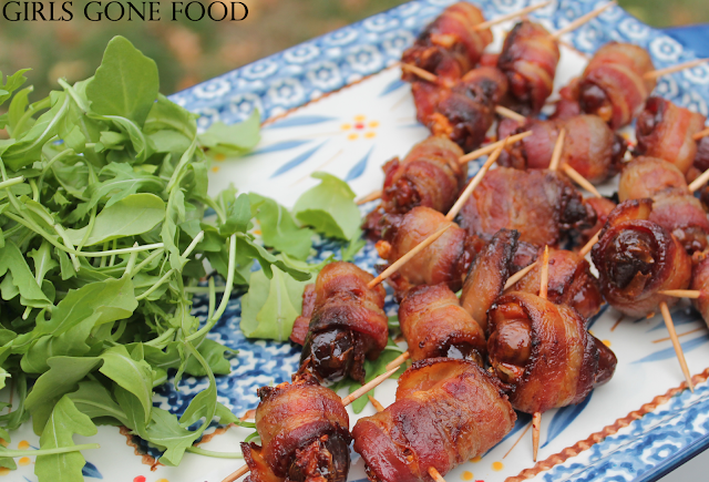Note: If you’re taking it to a friend’s house, bake the dates for about 10 minutes at your place so you are not traveling with raw bacon. When you arrive at your destination, bake for another 5 minutes or so until bacon is crispy.